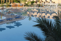 Добрый день. Постараюсь быть краткой и справедливой в своём отзыве. Отдыхали в отеле второй раз,с 23.07 по 02.08,до этого были ровно год назад,день в день. Заселение-быстро,чётко,слажено. Прибыли в отель в начале 5 вечера,автобус был не полный,человек 20. Разместили по нашему желанию-в 3 корпус,3 этаж,номер 3234,с боковым видом на море и бассейн.(оплачен был стандарт с видом на окрестности). Номер отличный,работало всё и без малейших нареканий. Вид из номера замечательный).При заселении в номере не было полотенец,вышли в коридор,нашли уборщика-через 5 минут все полотенца были на месте.Ещё через полчаса принесли дополнительную кровать для ребёнка. Мини бар был уже пополнен,так же были и чай-кофе-сахар. Пополняли в течении отдыха исправно,без вопросов. Постельное было идеально чистое,без дырок и прочих прелестей,полотенца так же,не придраться. Через 30-40 минут принесли тарелку с фруктами и набор мыльно-рыльных принадлежностей для постоянных гостей-гель для душа,шампуни,шапочки,ватные палочки и зубные нити. Так как пользуемся мы и привозим всегда своё-это взяли на презент друзьям(по приколу). Жидкое мыло в дозаторе и гель для душа в дозаторе были всегда. Лейка в душе была новая,регулировался разбрызгиватель и её наклон.Уборка номера была каждый день,полотенца меняли через день,постельное поменяли 1 раз,но нам чаще просто не надо было,мы,знаете,чистые,в кровать ложимся. Про номер в принципе всё. Коридоры у нас на этаже,и лестница ,скажем так,были далеко не чистые,по сравнению с прошлым годом,частенько возле дверей стояли грязные тарелки(возле номеров где проживали арабы). Лампочки горели всегда! Темно не было ни разу!. Про лифты не скажу-не пользовались. Территория отеля,по сравнению с прошлым годом,стала более грязной,штат работников заметно сократился и убирать за отдыхающими огромными,некультурными и невоспитанными арабскими семьями,они явно не успевают. Бассейн-грязный,там купаются только арабы,и их невообразимое,огромное количество!!!! Я конечно отдыхала в отелях где отдыхали и местные,но в таком количестве-мы их видели в первый раз!! Меня это потрясло! Ничего плохого к ним,как к нации я не имею,но то,что им не хватает элементарных норм культуры и поведения-со мной наверное согласятся все. Хотя были ооочень воспитанные и культурные,и по виду видно,что далеко не бедные,но были,к сожалению просто невозможные. Едят и пьют они и в бассейне,и на лежаках и везде,никогда и ничего не относя после себя в мусорку,а просто кидая куда придётся. К концу дня у кромки бассейна была жирная,грязная,в еде и в чём-то ещё,плёнка на воде..Это ужасно..На дне бассейна лежали уже сформированные огромные "тюки " из волос..Их ни кто и ни разу так и выловил..В бассейне были пару раз,после приезда,и увидев всё это-больше туда ни ногой. Возле бассейна поставили кулеры с юпи и стаканчиками,и теперь,и разбросанные стаканчики и разлитые напитки,были везде. И сейчас у бассейна с утра играет арабская музыка,которая в первые 2 дня кажется прикольной,а после,от неё начинаешь медленно и верно сходить с ума...(((( Пляж. Убирают хуже,чем в том году,,песок не равняют совсем. Заменены почти 80% матрасов,это радует. Поставили раздевалки. В баре всё то же самое,за минусом фри-вместе неё просто картошка. Но перекусить и охладиться напитками можно всё так же вкусно. К этому у нас нареканий не было). Да,полоте