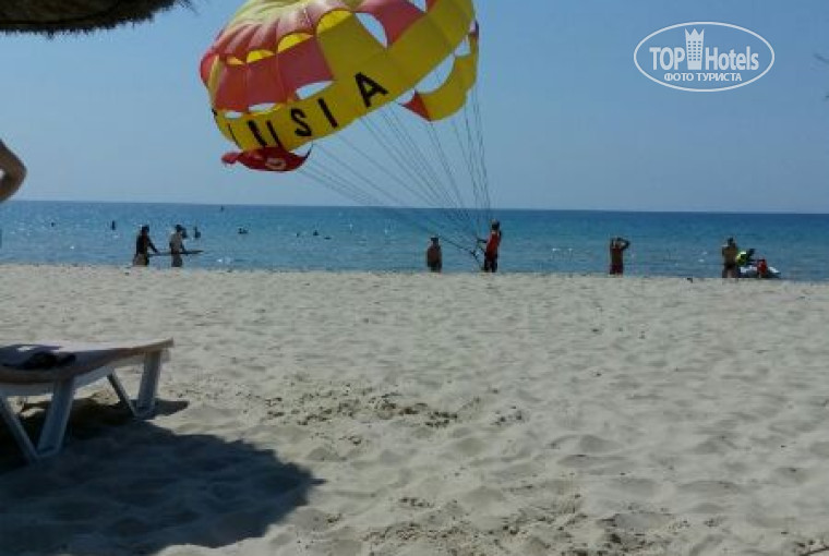 Собирались ехать в Грузию, но из-за низкой стоимости в связи с событиями в Тунисе, после долгих размышлений, поехали в эту страну. Отель мне очень понравился: большая территория, очень близко к морю, есть что-то вроде местного зверинца (пернатые,лошадь и ослик) - место где можно уединится, номер у нас был в последнем корпусе на втором этаже, окна выходили на пустынную территорию, вечером можно было открыть окно и подышать свежим морским воздухом, правда вдали были слышны звуки местных дискотек (нам это не мешало). Уборка номеров каждый день, за вещи в номере можно не волноваться, но вот нельзя забывать на ночь вещи на пляже, утром можно не найти, так ушло мое парео. Питание достаточно разнообразное, кухня местная и средиземноморская (много мяса, овощей, специй), потрясающие сладости. Все очень вкусное, но особенно мне нравились блюда на гриле и баклажаны запеченные с красной специей. Впервые за всю историю "отдыхов", обильно кушая 3 раза в день я похудела на 0,5 кг по приезду (это скорее связано с физическими нагрузками при купании в море и не завышенной каллорийностью блюд). От отеля организована очень интересная экскурсия в Сахару (стоит каждой потраченной копейки).