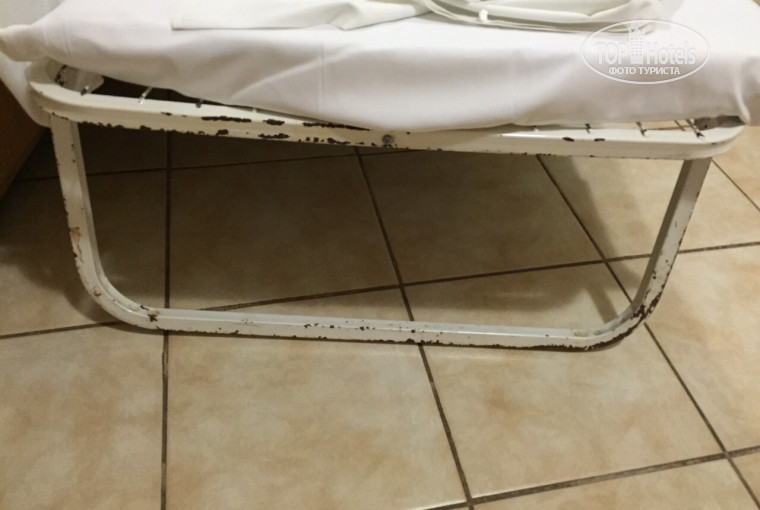 Номер старый и грязный. Везде пахло больницей. Пастельное белье было рваное, а подушки с желтыми засаленными пятнами. Мебель обшарпанная. Дали старую, ржавую раскладушку с кровяными пятнами на ножках. Ребенок на нее сел, а эти ножки разъехались. Потекшие, вонючие кондиционеры, которые через раз работали. В ванне везде грибок. Уборщицы даже не чистят унитаз, а только заливают его моющим средством. Мыло, шампунь, гель для душа очень низкого качества, что даже не мылятся и не смываются с рук. И то, их надо просить у уборщицы за евро. Пастельное белье меняю не каждый день. На полотенцах и пастели лежат чужие волосы. Фен не работал. Телевизор работал с трудом. Между стеной и потолком огромная щель! В номере ползают пауки размером с ноготь.