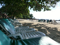 Пляж отеля большой и лежаков всегда всем и в любое время хватало. Огромным плюсом является наличие на пляже огромного раскидистого дерева, дающего тень практически на все лежаки. Для желающих лежать поближе к морю, служитель отеля устанавливал зонтики в любом понравившимся месте пляжа. Песок на пляже крупноватый, но ближе к морю становится совсем мелким и мягким. Вход в море пологий и песчаный.