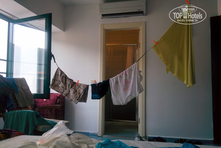 Нам достался наверное самый ужасный номер, даже без балкона, поэтому приходилось осуществлять сушку купальных принадлежностей и полотенец в ванной комнате (а когда стирали вещи, то сушили на веревке в комнате). Вообще, более не комфортного номера еще не встречали. Кондиционер в этом номере размещался напротив кроватей и отрегулировать его направление таким образом, чтобы можно было бы спать ночью комфортно, не представлялось возможным (дул как ненормальный, работал очень-очень шумно, и с открытым окном тоже заснуть было нереально и душно, и музыка из близлежащих баров не давала уснуть), вот и приходилось весь отпуск просыпаться от холода через каждые полтора-два часа, чтобы отключать охлаждающего воздух "монстра", а потом просыпаться от духоты для того чтобы его включить, в общем ужас.