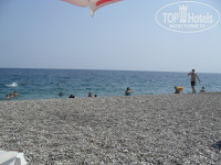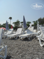 На городском пляже у отеля свой участок, лежаков хватало всем, если пришли поздно - отправляли на соседний участок с желтыми матрасами. Единственный минус - зонтики с утра, пока нет работников пляжа, приходиться самим устанавливать в гальку, женщинам это не особо удавалось)))