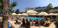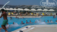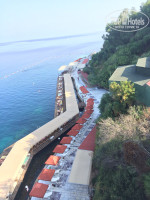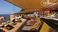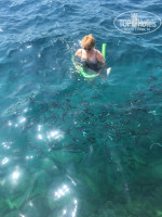 Пляж по началу не понравился: дощатый, длинючий, только с одного края метров 10 галечный, с другого - столько же каменно -галечный. Зато в этом были свои плюсы: родители с детками уходили на гальку, а все взрослые бултыхались у доски. Вода суперская, чистейшая, никаких медуз и проблемных водорослей, вокруг плавают стайки рыб, если прокормить, то вообще купаешься среди них. Кругом красота неописуемая, не надышаться, не насмотреться. Развлечения на любой вкус: акваланг, серфинг, аквапарк, таблетки и пр. Почти все номера с видом на море, растительность экзотическая, единственный шум - цикады.