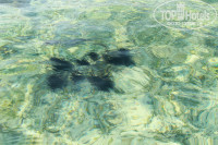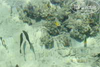 Многие пишут что моря там нет - они просто плохо искали))) Около 100м да, оно по-колено - рай для маленьких детишек, которые не умеют плавать т.к. оно теплое и спокойное. С половины пирса(2я часть строится) отеля можно было зайти в воду уже по грудь - дно песчаное, вода прозрачная, иногда проплавают рыбки рядом, есть водоросли на дне, но не критично. А вот если вы не из пугливых, то можно прогуляться по воде(обязательно в коралловых тапках) от пирса этого отеля до обломков затонувшего корабля(их видно), которые находятся в конце пирса соседнего отеля(слева, если лицом к морю), идти надо по-диагонали, либо по соседнему пирсу, но за деньги(1-2$ c чел). Вот тогда можно увидеть коралловые рифы с рыбами, не забудьте маски, ласты и будьте осторожны - бывают сильные волны, можно пораниться о кораллы. Если же вы решите пойти по воде(мин 20-30), то можете увидеть мурен, морского огурца, небольшие коралловые рифы с рыбками, а еще ближе к обломкам будет отмель, примерно по пояс, с черными морскими ежами, их там целое поле, они сидят такими кучками(семьями), если их не трогать руками, ногами, то они безопасны т.к. передвигаются медленнее черепах - все это находится в спокойной, прозрачной водичке.
