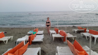 Расположен отель очень и очень удачно - прямо из лобби-бара отель имеет собственный подземный переход на свой пляж. Пляж небольшой, на нем есть лежаки и зонтики (оранжевого цвета). В первый день с поиском зонтика пришлось помучиться, дальше таких проблем не было. Пляж песчаный, заход в воду мелкая галька. Заход самый лучший из близлежащих отелей, нет камней. Оптимальный вариант! Вода прозрачная, т.к. нет мути от песка, сколько бы детишек (да и взрослых) не плескалось на мелководье. В предпоследние дни был дождь, к берегу прибило мусор в виде веточек, листиков.