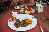 Питание прекрасное! Много зелени (особенно порадовали листья салата), свежих, маринованных овощей, салатов на выбор минимум пять видов, грибы, каши, рис, макароны, кус-кус, индейка, курица, мясо, местные турецкие колбаски, сосиски, нарезки все в различных вариантах, рыба как приготовленная при Вас, так и жареная, картошка фри всегда, множество соусов, супы в ассортименте, хлеб, выпечка, джемы, сухие завтраки в ассортименте, кофе из автомата, заваренный чай, пакетированный чай, молоко, много разных сыров, несколько сортов сладостей собственного приготовления, 4 вида сока из автоматов. Из свежих фруктов - только арбузы, яблоки, сливы. Алкоголь неразбавленный: пиво, местное вино красное и белое из бутылок, водка - все местного производства, на любителя. Вода в куллерах почти по всей территории гостиницы на первом этаже. Еда свежая, количество подходов не ограниченное, и есть можно 5 раз в сутки. Ресторан - обычная столовая, бывают очереди, ассортимент еды и количество - хватает всем всего, при условии, что Вы пришли не к самому закрытию. Видимо, концепция гостиницы такова, что таким питанием они компенсируют все остальные огрехи.