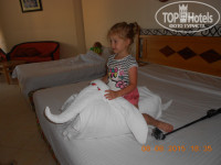 В аэропорту Хургада,приобрели визы за 25 долларов с человека, и прошли все достаточно быстро(на детей визы не брали). До отеля ехать минут 45-50, он последний, и с любой экскурсии вы также будете возвращаться последними, ну а выезжать соответственно первыми.По прибытии мы заполнили бланк регистрации и подошли на ресепшн. Изначально мы брали у тур оператора самый обычный номер с видом на улицу Land, но подслушав разговор людей, которые стояли перед до мной, что 10 баксов в паспорт - и хороший номер обеспечен. Я так и сделала, и о чудо, номер с видом на бассейн и море, номер был хороший,большой, и нас все устроило.Мы прилетели поздновато, поэтому успели только поужинать))