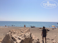 ПЛЯЖ: Чтобы добраться на пляж, Вам нужно покинуть отель, перейти через дорогу и пройти к набережной примерно 100м. По времени - это минуты 3. Пляж галечный: при входе на пляж среднего размера камни, раскаленные горячим турецким солнышком, у лежаков супер мелкие камушки-песочек, при входе в воду камни от маленьких, до больших, очень скользкие и травмоопасные. Я упала один раз, на ягодице остался большой веселый синяк. Без специальной обуви (продается повсюду от 1$ до 5$) я не видела ни одного человека.
