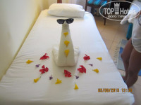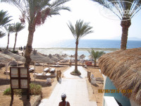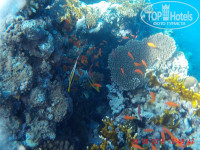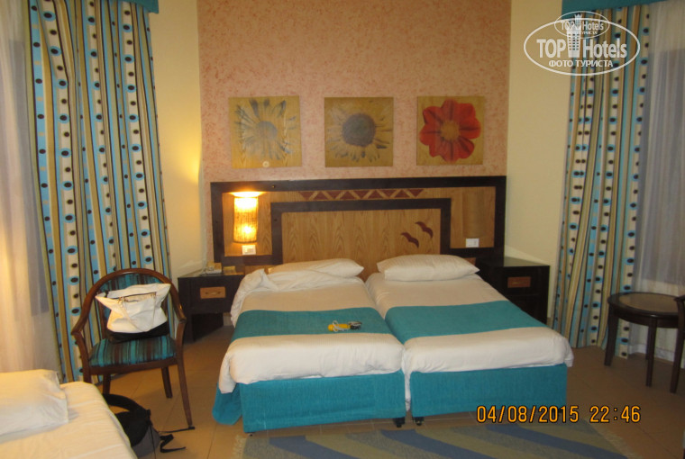 Отдыхали в этом отеле в период с 04-13.08.15 и пока есть свежие впечатления постараюсь ими поделиться. Прилетели мы поздно, т.е. ближе к 22.00 и нас поселили в бунгало, куда изначально не хотели, т.к. начитавших отзывов о живности и работающем кондиционере дующем прямо на кровать особого желания в таком жить не возникало, а выбрать номер было нельзя, т.к. было поздно и все номера якобы были заняты, но на рецепшене дали понять, что в течении пару дней вопрос можно будет решить и мы этот вопрос отложили. Угостили нас холодным соком, что было очень к месту, ведь температура была 35 градусов и пригласили носильщика, но он что-то не особо горел желанием наши чемоданы помочь нам доставить в наш номер, сказал что занят, подождите 5 минут , а это мне не совсем понравилось, да и ждать не было желания, по-этому пришлось самостоятельно 2 чемодана тащить в наш номер, хоть показали как к нему дойти и на этом спасибо. Поселили нас в 423 номер, прямо возле будки с охраной, на это мы только спустя пару дней обратили внимание )) Номер был просторный , но мебель была старая, это нас немного смутило, но в итоге, на следующий день желание менять номер отпало и на удивление живности никакой не было, особенно комаров. В номере было все то, что нужно и холодильник работал отлично, а вот с кондёром дующим прямо на кровать действительно было вначале не комфортно, но есть решение, жалюзи на решетке можно регулировать, по-этому можно сказать проблема была решена, и вот что не понравилось , в номере отсутствовал верхний свет, т.е. не было привычной люстры, а были только несколько бра и торшер, а это не совсем было удобно, розеток мало, по-этому берите с собой удлинитель. Принесли нам поздний ужин, но особенно есть было нечего и то, что принесли есть было не возможно, не считая фруктов и сладкого, по-этому можете на счет этого при позднем прилете особенно не переживать. Да и ещё на счет номера, не скажу что в восторге, но вполне нормально да и место расположение в итоге оказалось удачное, по середине, т.е. между главным корпусом и пляжем, да и днем/вечером было не шумно, что давало возможность хорошо отдохнуть. Убирали практически каждый день, а за 1 у.е. крутили из полотенец разные фигурки ребенку, да и нам это очень нравилось. В любом случае совет для заселяющихся перед тем как получать ключи, в начале посмотрите, а потом соглашайтесь или меняйте, очень не плохие номера, которые нам очень понравились, расположены на первом этаже главного корпуса и выход есть прямо к бассейну и ремонт с мебелью там намного лучше, а по деньгам тоже самое. На счет солнца, температура все таки в тени от 35 градусов и сгореть можно быстро, по-этому советую в первые дни да и вообще не забывать мазаться кремом с защитой минимум 50, а купаться советую ближе к 11 в футболке, вероятность испортить себе отдых сведется к минимуму) Для любителей моря и тех кто едет ради красивых рифов и хорошего пляжа, скажу так, выбирайте другой отель, это место не для вас, т.к. в период нашего прибывания и думаю не только, практически постоянно весел красный флаг в первой половине дня и был отлив, а это не давало возможности насладится всей прелестью красного моря, а когда можно было купаться - это была вторая половина дня, плавать можно было только возле пантона и не дальше веревок, а те кто уплывал в сторону спасатели постоянно свистят, что очень напр