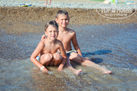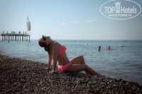 Галька!!!! Заход в тапочках желателен. Иначе больно, увы. Никто в отзывах не написал, что галька не только на пляже, но и в море тоже. Если отлив, есть песочная полоса, если прилив - сплошная галька и очень больно заходить. Но само море ОЧЕНЬ теплое!! шикарное. Пару раз были волны - супер! Прыгали с понтона. Правда, он не очень высокий, но все равно - хороший. Спасатель сидит и смотрит. Все хорошо. Сам пляж в меру чистый, если честно. Но все зависит от самих посетителей - меньше кидать окурков в песок, и все хорошо будет. Лежаков всегда всех хватает! Отличная детская песочница. Можно свои игрушки не брать( мы брали), там много местных игрушек на любой вкус. Как видно из фоток, песочница под навесом. Все так и есть. Убирают ее регулярно. Душ, туалеты и мини бар( не алкоголь) есть на пляже. В общем то, все на позитиве. И даже галька уже не так пугает ( хотя и неприятно), т.к. море просто изумительное. Единственное! там иногда появляется течение из речки, которое через 2 отеля, очень холодное. И немного грязное. Но это не всегда. Просто так, к сведению.