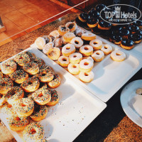 ● Отдельный жирный плюс - еда! Она была просто ВЕЛИКОЛЕПНА! Я придерживаюсь здорового питания, но даже мне среди кучи вкусных сладостей и жирностей нашлось достаточно много чего пожевать. Мясо: вареное, жареное, запеченое, шашлыки из говядины, курицы и свинины, морепродукты, сладости и торты невообразимого вкуса. Очень много фруктов. Отдельное детское меню. Пиццы, пончики, у отеля даже свое мороженое в мелких баночках есть в зале. Каждый завтрак море выпечки: булочки, круассаны. Стоит отдельно человек и печет свежие блинчики с разными соусами.