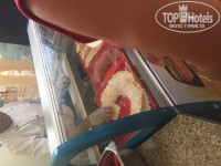 5. Бассейн... Макс. Глубина 120. Разрешают всем купаться, в чем угодно. Масульманкам одетыми ( даже не в специальных плавательных костюмах, а в простых платьях и платках( нигде такого не видела, везде в море можно в бассейне нельзя). За все время отдыха один раз видела как пылесосили бассейн утром до начала работы. В бассейне очень много песка, салфеток плавает на дне и всякого другого мусора. При нас ремонтировали мостики перекинутые через бассейн, их сначала шлифовали и все что счищалось валилось в воду, потом красили белой краской, которая капала тоже туда же!!!