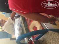 3. Ресторан.... Грязно! На завтрак попалась лепешка с плесенью! На завтрак колбасу и сыр выдают по два кусочка( первый раз в жизни такое вижу!). Из 12-ти горячих блюд 2 с рисом, 2 с картофелем, 1 с рисом и мелкой вермешелькой ( в первый день приезда было еще два с печенью) остальное 1 с рыбой, 2 ( одинаковых) картофель с говядиной, ну и еще какая нибудь лазанья и овощи на пару. Такой набор каждый день на обед и ужин, иногда добавляются еще крылышки, один раз были крабы размером с рака, в котором есть особо нечего. Очереди, очереди,очереди. За напитками, за огурцами(!) и помидорами(!) их кстати тоже выдают! Скатерти грязные, их во время ни завтрака, ни обеда, ни ужина не меняют! Если ты пришел не к началу трапезы, а до тебя за этим столом уже кто то поел и что то пролил, то извините, никто не кинется тебе менять скатерть, максимум что сделают перевернут(!) ее.