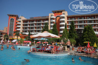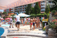 Отдыхали в отеле в начале августа я и дочь 10 лет. В прошлом году отдыхали в отеле в Св.Константин и Елена я его рекомендовала всем, а теперь всем рекомендую Хризантему. Отель очень хорош за свои деньги. В Турции за отель такого уровня отдашь в 1,5 раза больше. Предыдущие отзывы думаю полностью все описывают. Привыкшая отдыхать в последнее время с зонтом и на шезлонге )))) очень боялась как я буду тут без них. Все оказалось намного проще купили зонтик за 10лев (350рб.) постилки из дома были взяты и никаких проблем, хочу головой к солнцу… хочу ногами лежу ))) Согласна с тем, что действительно изоляция у входной двери очень плохая, кто прошел, кто ушел все слышно, а вот соседей через стенку не слышала. Убирали тоже так себе, но мусор был всегда убран, полотенца, которые как положено бросали на пол, меняли, да большего вроде мне и не требовалось. Насчет территории – большая, ухоженная, бассейн очень холодный, очень хорошо после обеда полежать в тенёчке на полянке. Анимация: старались, но очень неудобное расположение сцены, дочь 10 лет была в восторге от танцев. Да про ресторан: все объедение, мясо, овощи, и никаких очередей, как в прошлом году в отеле Долфин, вот там очень была удивлена когда пришли первый раз на обед и встали около входной двери в хвосте. Здесь подход с двух сторон и столы довольно длинные, поэтому наверное и свободно. Из фруктов съедобные были виноград, яблоки и арбузы. Персики если перещупать штук 10 )))) можно было найти тоже съедобный. Выпечка…. ))))) незнаю уж магазинные или сами пекут, но действительно вкусно. Я объедалась завитками и треугольниками, которые медом были пропитаны. Каюсь, в последний день набрала их с собой, чтобы родные обязательно попробовали это чудо! Насчет магазинов – конечно супермаркет Младость самый дешевый продуктовый, я там и специи и джемы купила, и посмотрите там импортное спиртное кого интересует, я купила его там, в дьюти-фри дороже вышло бы. Косметики розовой выбор не большой, но тоже дешево. Возьмите губку которая розовым мылом пропитана, отличный подарок для женщин, хоть и стоит всего 1,5лева (50руб.), мне на следующий год уже штук 10 заказали )))) Еще возле отеля Альба напротив Кубани есть самый дешевый магазин с розовой косметикой прямо возле м-на «Русская книга»