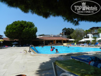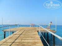Отдыхали в отеле с 17.08.2015 по 24.08.2015 г. Брали два номера 4106 и 4111. Прилетели в Турцию рано утром. В отель добирались полтора часа. Зарегистрировались и пошли Завтракать. Завтрак очень скудный. Переоделись в туалете около регистрации и пошли на море. МОРЕ!!!!!!!!! Какое же оно красивое, теплое и ласковое. Купались и прятались от солнца. Пирс очень удобный. Жалко что на нем нет лежаков или стульев. Вечером хотелось посидеть там, подышать воздухом, отдохнуть от солнца. Навесов мало и занять лежак под навесом проблематично. Купались в спецобуви. Пообедали в кафе на пляже. Бармены приятные, улыбчивые и вежливые. Работают быстро без проблем. Там картофель фри, картофель по домашнему, булки для ходдога и бургера. Начинка для этих булок. Соусы. Газировка, пиво, кофемашина, все для чая, кулер с водой ну и юпи. Пообедали, искупались и пошли заселяться. Ключи нам дали в час. Правда один номер не был еще убран. Мы кинули вещи в один номер и пошли к бассейну. Их там два. Один около ресторана 145 см глубиной. Второй чуть подальше 125 см глубина. Второй с горкой. Все развлечения в течении дня происходили у второго бассейна. Лежаков мало. Пришлось занять на все семь дней. Через заборчик от бассейна стоят уличные тренажеры. Рядом с бассейном лягушатник для самых маленьких. Он расположен так что солнечных прямых лучей там мало. Это безопасно для малышей. Между морем и первым бассейном стоит кафешка с напитками. Пиво, джин, местная водка, газировки. Чай и кофе самообслуживание.Работает с 10 часов. Бармен никакой. Еще тетка (по другому не скажешь, злая) печет лепешки с начинкой. Лепешки резиновые. Очередь стоит на жаре из-за нерасторопности тетки. Анимация есть, но мы с ней не общались поэтому ничего сказать о ней не могу. Магазин на территории небольшой и там все дороже по отношению к базару который находится через дорогу от отеля. Полотенце для пляжа можно купить на этом базаре стоит один доллар. Номера которые нам достались крошечные. Наверное они все такие. В номере 4111 в душе нет полочки для банных принадлежностей. Пришлось шампуни и мыло ставить на пол. Очень неудобно!!!! В этом номере одна стена осыпается и поэтому пол около нее постоянно грязный. Сушилки для полотенец и купальников в номерах нет. Брали с собой веревку и натягивали ее на балконе. Балкон большой. Вода для питья при заселении полторашка и заказывать новую надо на рецепшине. Дополнительно можно заказать еще одеяла там же. Шампуни и бумага пополнятся по мере надобности. Уборщицы в обоих номерах были отзывчивые и приветливые. Всегда здоровались и улыбались. Правда по русски не все понимают. Но удавалось договориться. Вечером пошли на ужин в ресторан. Обеды и ужины обжираловка! Мясное в основном куриное. Гарниры - рис, макароны, картошка и овощи. Рыба гриль и печеная в духовке. Фрукты - арбуз, слива, виноград, грепфрукт, лимон и яблоки. Салаты из помидор и огурцов разные. Зелень. Выбрать есть из чего. Десерты у них никакие. Место всегда можно найти. Официанты носятся в полном смысле слова и поэтому освободившиеся столики мгновенно убираются и готовы к заселению. В ресторане бар. Напитки такие же как и в баре на территории. Мы пили пиво, джин, джин с тоником. Пробовали вино. Светлое понравилось больше, но красное лучше уталяет жажду. Кофе машина и чай самообслуживание. Кулер с водой у барной стойки. Нам очень понравилось отд