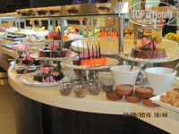 Работает с 10 утра У вас всегда будут спрашивать :напитки с собой или здесь тк даже кофе наливают в кофейные чашки,а чай в чайные(такое бывает не во всех отелях).