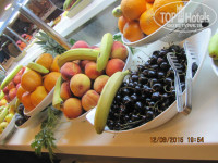 Завтрак-всегда есть 2 вида каш(рисовая молочная и чередующиеся овсяная и манная (качество и консистенция и норма сахара на отлично).Супы есть на всех приемах пищи и даже на завтраке .Фрукты есть также на всех приемах пищи (не порезанные), а цельные. Виноград и черешня только на ужинах (тоже чередуются).Яблоки(зеленые и красные),апельсины, грейпфрут, груша ,персик(был еще не дозревший) и нектарин(сочный)на всех приемах пищи. Арбузы и дыни(в кусочках)-также были всегда.Официанты на обедах и ужинах предлагают напитки (они будут из упакованной тары):кола,фанта,нести(холодный чай есть со вкусом персика и лимона)-очень вкусный, лимонад(желтенький с настоящим вкусом лимона с сахаром),а также можно просить томатный сок (будет из упаковки).Напитки подаются холодными (если ребенку, сами добавьте горячей воды или попросите принести напиток теплым).Свежевыжатый сок апельсиновый платно(1.5 евро). Не спешите брать напитки сами из аппарата или идти к бару в ресторане-это работа официантов и им самим не нравиться когда вы берете напитки у аппарата и не просите у них! Они говорят:Это сервис отеля и им надо пользоваться(умные люди) к тому же еще и бесплатно.Чаевые конечно очень даже приветствуются .Да и когда тебе все быстро приносят и с улыбкой на лице-на чай дать одно удовольствие.На приемах пищи в ресторане всегда присутствуют несколько менеджеров разного звена-контроль над работой сотрудников постоянный (большой плюс).Блюда, которые были в ресторане смотрите из фото. Еда очень достойная-оценка 5. Из ресторана еду выносить как и везде запрещено, но многие выходя из ресторана прихватывали с собой какие-нибудь фрукты -никто замечания не делал .Я даже брала с завтрака блинчики для детей и клала их в ланч-бокс (делала аккуратно ,перекладывая с тарелки сидя за столом и даже пару раз брала дочери котлетки и клала в термос (тк дочь уже спала в коляске)Для проверки реакции персона я делала это наглядно-замечаний никто не сделал. Думаю, для отеля важно, чтобы вы не несли еду в стеклянной посуде во избежании последствий.