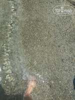 ПЛЯЖ находится внизу в небольшой очень уютной бухточке. Вниз абсолютно не трудно спуститься, если лень подниматься обратно, то для вас ходит автобусик. Сам пляж наимельчайшая галечка - большой плюс. Тоже фото прилагается. Из-за того что пляж в бухте, то волн там практически нет, зато вода кристально-чистая, прозрачная. Плывешь на 5м глубине и видишь дно) .