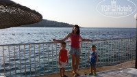 Наша семья решила снова посетить Турцию, но помня что в августе месяце очень жарко, имели опыт быть в Кемере в этот период. и просто погибали от влажности и жары, решили попробовать Бодрум, за те деньги, которыми мы располагали, а именно путевка на 4х человек)-2 взрослых и двое детей 5 лет и почти 3 года) обошлась нам в 108 000 на 7 полных дней.Летели от Корал Тревел-Одеон в Турции, как всегда все на высоте. Небольшая задержка рейса туда и обратно-на полтора часа, ну ладно пережили и все хорошо.Приехали, зарегистрировались в отеле, одели нам браслетики всем , и ПОМНЯ ЧТО В ТУРЦИИ, и в-принципе везде заселение с 14-00!!!!мы спокойно пошли в бассейны и на море, переоделись в туалете,вещи оставили на ресепшен.Не нервничали спокойно прошли все. освежились в море, пообедали в ресторане, и потом пошли спокойно в свой отличный номер.Чисто было, вода шла хорошо, но огненной не была,скорее комнатной, по утрам была обжигающе горячей, но мои дети ни разу не закричали что холодно, да. она была соленой, но вы же ее не пить должны))))Кулеры с водой питьевой стояли везде. при заезде нам забыли положить в мини-бар бутылку, звонок все исправил, в течении 10 минут нам постучали в дверь и принесли бутылку воды.