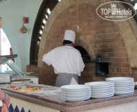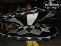 Ужин с 18:30 до 22. Проходил в ресторане у бассейна при свечах и под живую музыку. И в основном ресторане. И там и там еда вся одинаковая. Разница только в том что у бассейна всё готовят у Вас "на глазах", а в основном ресторане всё это лежит в раздатках. В ресторане у бассейна большие проблемы с местами и очередями за едой, а в основном ресторане сидишь как человек в кондиционированном помещении, всегда есть места, и никаких очередей (вероятно не все знали что есть возможность ужинать ещё и там). На ужин два вида супа (других, не как на обед), рыба, курица, рис ну и т.д., всё то же что и на обед. И каждый день что то дополнительное. То лежит большая рыбина красная, от нее отрезают куски, перемешивают с овощами и выдают. В другой день лежит большая индейка - её нарезают и выдают. На мангале каждый день тоже что то жарят - крабы, или кальмары, или мясо, или печень.