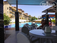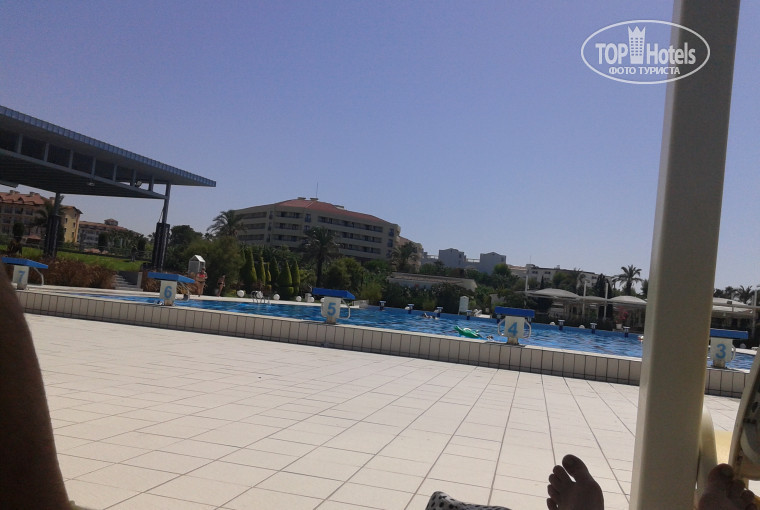 Территория отеля небольшая , но уютная, 4 бассейна, один из них детский с горками, горки небольшие.Есть небольшая проблема, лежаки возле бассейнов заняты, правда мы с сыном ходили утром часиков 10, когда оставляли дочь в детском клубе, на Большой олимпийский бассейн, глубина 2,4 метра, иногда там были свободные лежаки. Но После обеда всегда ходили на моря, ни когда не понимала людей,которые приезжали на море, но всё время пролежали возле бассейна.
