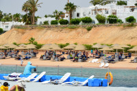 Таким образом, старт отдыха прошел немного смазано. Запланировано было, что при достаточно раннем вылете из СПб по плану вылет в 8-50 и прибытие в Шарм-Эль-Шейх ожидалось в 13-30. Стало быть, и номер получить, и на море попасть, уверенность, что всё можно успеть, была на 100%. Увы! Прилёт в Шарм в 17-00. Формальности на границе, получение багажа, трансферт в отель с развозкой туристов по местам отдыха, заселение в номер и вот вы на берегу моря в 19-00. Всё! День закончился. Пляж закрыт, понтон закрыт. Бар на берегу закрыт – господа - идите уже ужинать!