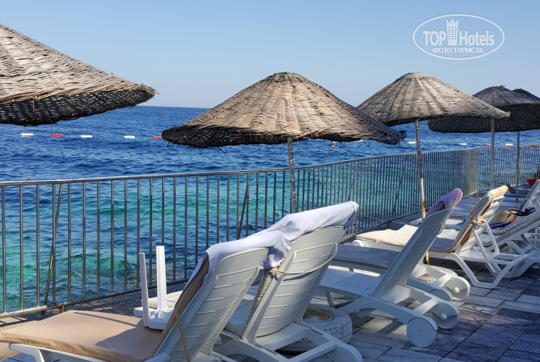 Прочитанные до отъезда отзывы вызывали искреннюю боль за предстоящий отдых*) шучу! Всегда делю на 35 заунывные жалобы избалованных туристов "из элиты в помойку") Заселение в отель долгое..отель забит до отказу! Небольшое вознагражление на ресепшн ускорит его часа на два. Операторы! Вы должны предупреждать о правилах заселения в отель. Отель, правда, постоянго забит туристами. Персонал не справлчется с уборкой и схема заселения сделана Европейская!!! 14:00. Нигде в Европе вас не заселят в номер раньше 13:15))) тк по всем правилам должны это делать в 14:00! Люди, которые приезжают как мы в 7-8 утра в отель! Имейте это ввиду и обязательно положите все купально-пляжные прибамбасы поближе в чемодан. Берите с собой маленькое полотенчико и сразу неситесь на плчж занимать места)))) кстати..Бронировать только основное здание! Номера большие. Сантехника более-менее в норме. Кондей работает прекрасно. Есть маленький минус-подушки*)) это что-то! Плоские, тяжеленные лепешки... спать, конечно, на них ужасно*))) Бунгало все ругали...значит, не айс! Ресторан скромен, но есть, что выбрать. Посудка старенькая. Питание на 4+. Всегда есть турецкий чай и море зелени, в тч мята, лимон.. Очереди на ужин конкретные. Идти нужно к 19:20, чтобы сесть за столик с видом на ночную бухту. Море классное. Вход в море как в бассейне через лестницы. Есть галечная крошечная бухта. Там, если нет волн тусуют детки. А если волны, то полотеля развлекаются) Лифт к пирсу работает почти всегда*) питание на пирсе(он же пляж) хорошее, в стиле всех турецких отелей. Крепких напитков там на пляже нет..что очень спасительно для наших туристов. Каждый раз лететь на лифте вверх за коктейлями им лень. Полотенца на пляже нормальные..старенькие, новенькие..разные.. но не вонючие, как в отзывах. Утром мест на пирсе нет. Если вы вышли к морю в 9, вы не найдете ни одного свободного лежака. Наши бегут толпой в 7 утра и на сто человек занимают места)) очень веселое зрелище.. мы тоже научились. Солнце на пирсе появлчется после 9 утра.. до этого времени все лежаки в тени. Это тем, кто любит залечь загорать в 8. Для вас у бассейна ..точнее над бассейном..есть две терассы с комфортными лежаками. Там всегда жарко и всегда весело. Вся анимация как раз в этом месте. На пирсе у лифта😂 есть дайвинг центр с очень классными инструкторами. Бананы, гидроциклы, байдарки..рядом за денежку, конечно же. Байдарка(каное) в Греции 5 евро..тут 15 долларов..не поняла*( есть маленькая милота на пляже.. На пирсе несколько раз в день кормят хлебом рыб. Потрясающе! Жирненькие, раскормленные рыбищи вырывают друг у друга калории. Горки есть у маленького бассейна, но они не стоят того, чтобы на них кататься. Вид с пирса удивительный. Мы поклонники Греции точно знаем, о чем говорим)) кстати, сам Бодрум очень милый городок. Гюндоган -деревня деревней) автобус до Гюндогана 1 доллар, из Гюндогана до Бодрума 2 доллара. Дешево и сердито! Ресторанчиков много и там и там, кстати. Тренажерный зал-отстой. Кто не только наедает попы, а еще немного работает над собой,-это проблема*((( беговая просто жуть))! Огромное количество кошек развлекает весь пляж и весь ресторан. Дети им носят еду мешками)) вечерняя анимация для детей как всегда..остальное не организовано*( но, зато тихо)) уборка хорошая...оставить 1 доллар утром не западло??? Тогда вообще на отлично. Нас заваливали шампунями, мылами и кондицио