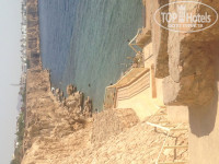 Что касается моря - оно восхитительное! Не сравнится с черным, но это и так все знают. Вход-только с понтона. Говорят, что их было три, но мы углядели только два- один утопленный, другой - над водой. До моря идти минут 5-10, все зависит от корпуса. Постоянно курсирует таф таф, но на нем нам тоже не суждено было прокатиться, потому что мы были не прочь прогуляться до моря сами. Спуск к морю по ступенькам, лестница довольно-таки длинная и в жару подниматься было действительно очень тяжело. Но если пройти чуть дальше-можно спуститься к морю на лифте. У моря есть бар, в котором действует "все включено", напитки такие же, как и на баре в отеле.