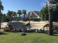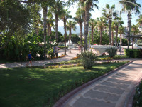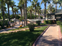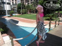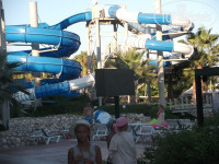 Территория самого отели огромная, зеленая, неплохие горки дети катались с удовольствием. Мы облюбовали себе бассейн рядом с итальянским рестораном на лужайке под тенью деревьев. Бассейн и море рядышком, мороженое - рукой подать, дети бегали за пиццей, то же все рядом. Благодать.