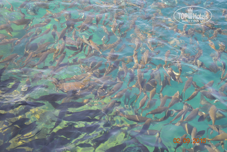 отдыхали с супругом с 2.09.15 по 9.09.15. Прилетели рано утром,в отеле были около 9 утра, были предупреждены,что заселяют с 14.00 и любые меры бесполезны. Нам сразу одели браслеты и пригласили на завтрак. Мы бросили чемодан на ресепшене и отправились кушать,затем переоделись и пошли к морю... Море-оно шикарное! Эгейское море-чистое и прозрачное,как слеза,красивое и теплое! Мы влюбились в него. Много заходом с пантонов,а также галечный пляж для детей и взрослых. Много рыбок,их кормят булочками и хлебом,которые берут на баре у моря(также там готовят бургеры,фри,наггетсы,была курица с вертела для шаурмы и колбаса фри). Сами сотрудники кормят их остатками недоеденных булочек-зрелище прекрасное,как в бухте Аквариум. все ныряют с масками-супер!