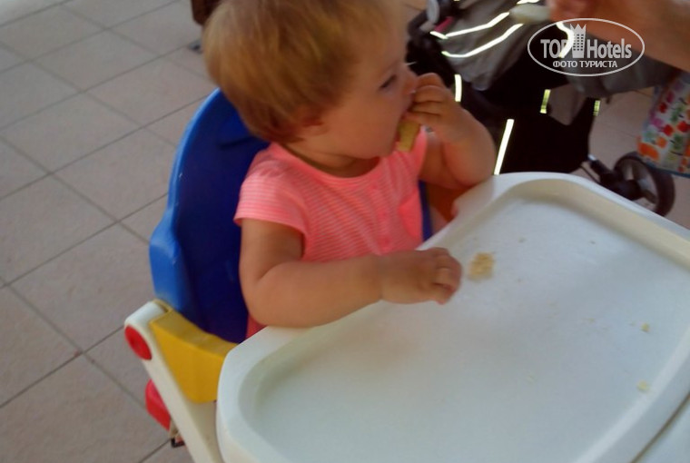 4. Питание. Кто едет с ребенком до 2-х лет – сразу скажу кушать ему там НЕЧЕГО!!! Если только йогурт по утрам. Хотя написано что есть детский стол. Он там действительно есть, но… там такие же картошка фри, непонятные сосиськи-малышки и фрукты. Всё!!! Мы брали с собой детские кашки «Heinz»на утро и на вечер, в обед давали овощное пюре (привезенное опять таки нами из России). Что касается еды в целом – меню повторяется через неделю. В пятницу у них что-то по типу Мексиканской кухни, все остренькое. Утром каждый день без изменений: блинчики, 2 вида йогуртов, хлопья и шоколадные шарики, жареный бекон, яичница и омлет, фасоль в томатном соусе, несколько видов сыров. У нас был полупансион. На ужин давали каждый день что-то новенькое. Запеченая баранина, говядина, свинина, лазанья, «что-то там с акулой»… все вкусно! Из постоянного: картофель фри, печенный картофель, пицца, рис. 3-4 вида салатов. Напитки бесплатно только на завтрак: чай (пакетики), кофе, какао. Соки - разбавленые юппи. Местный алкоголь - не "ах". Из фруктов было: арбузы, дыни, сливы, персики, нектарин, апельсины, яблоки, виноград. Нам все понравилось! Персонал очень оперативно убирает грязную посуду. Из минусов: на завтрак к 8 часам уже нехватает всем чашек под чай-кофе, и глубоких тарелок под хлопья с молоком. Кстати, для детей полно детских стульчиков.