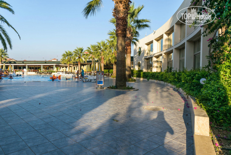 Наш отдых в этом отеле был с 15 по 24 августа.Ездили втроем,номер был DBL+ext.Начну как обычно с заселения.Приехали в отель в половину первого,дорога с аэропорта оказалась дольше чем планировали,по причине пробок на дороге.По приезду нам предложили сходить на обед,а после чего сразу заселили.Номер нам достался прям в "центре событий",то есть он был рядом с релакс баром и рестораном,нам такое расположение очень понравилось(номер 235).Номер по размеру средний,ощущения тесноты в нем совершено нет.Все функционирует исправно,кондиционер у каждого номера свой,работает он хорошо.Сантехника вся впорядке,выглядит и работает все как положено.Единственное что не понравилось это устаревший телевизор и отсутствие музыкальных каналов с европейской музыкой.Уборка номера тоже не подкачала,убирались каждый день,меняли полотенца,да и так все приводили в порядок,причем не зависимо от чаевых.Территория отеля это просто отдельный разговор.Отель просто огромен,в нем реально заблудиться.Все выглядит просто великолепно,растения все ухожены и разнообразны,создается впечатление райского уголка.Домики все опрятные и красивые.Также на территории есть много качель,гамаков и декоративных статуй животных.В общем выглядит все прекрасно,особенно для тех кто любит фотографировать.Еда в отеле разнообразная и вкусная.Мясных блюд предостаточно.Каждый день было что-то новенькое.Так как я все-таки любитель русской кухни,мне было комфортно,потому что всегда был выбор среди гарнира,мяса и рыбы.Правда a la carte ресторан (а мы выбрали рыбный) разочаровал,еды было крайне мало,и это было удивительно,учитывая что в обычном ее до отвала.Для примера,мы втроем заказали креветок,нам принесли по две креветки на каждого,это конечно не приятно,но основное блюдо было вполне себе нормальное,как по объему так и по качеству.Ассортимент напитков,учитывая ультра всё включено,достаточно бедный,но в принципе хватает.Меня самого волновал вопрос что же там есть,поэтому отпишусь.Для меня из хорошего алкоголя был Red label,водка Smirnoff,были также мартини и всякие джины,ликеры,но это кому что надо.Например джин там хоть и не брендовый зато качественный.Пиво отличное во всех барах.Теперь о пляже.Пляжные полотенца каждый день новые,кому захочется можно даже в день несколько раз менять.До пляжа возят на электромашинах,ждать их особо не приходиться,интервал где-то минут пять или меньше.Пляж песчаный,огромный и чистый.Лежаков хватает на всех.Заход в море не совсем удобный.Сначала около берега песок,а потом начинаются кораллы.Но вообще есть промежуток,где-то метров тридцать,прям напротив спасательной вышки,где вообще нет кораллов.Но для тех кто хорошо плавает,море покажется довольно интересным (по меркам Турции).Оно чистое,теплое,и из-за тех же кораллов в нем много живности.С маской интересно поплавать и посмотреть на подводный мир.Понырять особо негде,пирсов в округе нет,а с понтонов (не знаю точно ли они так называются) как-то не интересно.Аниматоры в отеле просто отличные.Благодаря им мы были в курсе о всех мероприятиях и отлично проводили время на их программах,которых было предостаточно.Они проводили много забавных конкурсов и игр,как для взрослых,так и для детей.Само собой разумеется были русскоговорящие аниматоры,которые стали для нас хорошими друзьями.Развлечений в отеле масса.И тут я ска