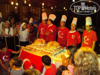 Самые интересные субботние вечера, когда сотрудники отеля устраивают Турецкую ночь для гостей (мы попали на две субботы!!!) На ужин особые угощения, после повара вынесли два огромных торта-мороженое. Далее шоу: Belly dance (танец живота), национальные танцы. Красиво!