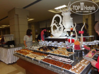 Питание хорошее. Так как желудок у меня один))))))) я и еды брала ровно столько, сколько он вмещает))))) За десять дней я перепробовала все разнообразие блюд!А готовят там вкусно ! Все выглядит аппетитно !И , конечно, трудно удержаться, чтоб не попробовать турецкие сладости! Какая там пахлава! Тортики, пироженки и прочее великое множество кондитерских изысков я не пробовала. Зачем? Все это я могу и дома поесть.А вот исключение для пахлавы сделала.Вкуснятина! И в России такое не попробуешь)))) Очень часто в ресторане появляется улыбчивый шеф-повар. Шеф-повару -браво!))))) Номера хорошие, просторные. Все исправно. Кровать очень удобная. Архитектура отеля такова, что соседних балконов не видно, а сами балконы широкие и от них постоянная тень в номере.Кондиционером пользовались раза два.