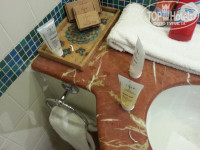 И еще один "минус", за который понижаю средний балл - уборка. Мы застали уборщика перед уходом, специально (и словами, и хорошими чаевыми) просили оставить ДВА набора в ванную, прибрать пыль на балконе и НЕ трогать личные вещи (одежду и пр.).