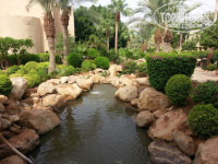 Отель красивый, чистый, оформленный в "старом" арабском стиле. Территория не слишком большая, ухоженная, зеленая, посередине протекает искусственная речка с рыбками (фото). Спуск к морю, конечно, напрягает (ступеньки, ступеньки, ступеньки...), но тут претензии не к отелю, а к причинам обмельчания Мертвого моря (фото).