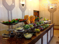 Еда в ресторане обычная для таких отелей. Удивила выпечка. Она ни разу не была свежей, всегда твердая, как бы вчерашняя или позавчерашняя. Её, видимо, выпекают, но не подают к столу, а ждут, когда предыдущую схомячат голодные гости отеля. По виду выпечка разная, но вкус один. Т.е. накрутили по-разному одно и то же тесто. Хлеб ВСЕГДА несвежий. Так же потрясли блюда из курицы. Как можно испортить курицу –то? Но мясо готовят так, что оно становится жестким, плохо жующимся. Арбузов не было ни разу. Были дыни, но они перед нарезкой не мылись, так же как и зелень (попадалась с землей).