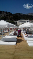 Пляж маленький, галька, очень не удобный вход в море, сильно большие булыжники, места занимают с раннего утра. Мы загорали на пирсе, после завтрака приходили и можно было найти свободные места. Только один спуск в море. До обеда, когда большое скопление народа, выстраивалась очередь, чтобы опустить свое тело в море.