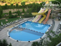 Отель находится между двумя дорогами, около гор. Территория отеля маленькая, чистая, ухоженная.