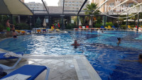 Отдыхали с 1.09.15-15.09.15.Летели Уральскими Авиалиниями.малость западал но в полете нагнал время так что прилетели вовремя. Места в самолете нам дали с женой раздельно, первый раз такое случилось. Еда тоже никакая. Сэндвич, кофе.чай и сок.Обратно тоже самое, Сэндвич и напитки, Уральскими Авиалиниями хоть места вместе дали Туроператор Санмар.По прилету в Анталию нас встретил Санмар.До отеля езды минут двадцать. Подождали еще одну пару и нас повезли в отель на микроавтобус 4. Парочка с ребенком вышли раньше а мы вдвоем поехали в свой отель Рамада рессорт лара. Заказывали путевки еще в мае . По приезду в отель мест для нас не оказалось. Всего то нас было двое.Предложили в соседний отель лара Фемели клуб на двое суток да так там и остались никто нас так и не переселил в рамада. Уборки в номере никакой. Даже из пепельницы не вытряхивают не говоря уже о кружках. Во первых их не было. Принесли из ресторана, раз оставил невымытой унесли.Пришлось обратно из ресторана брать и каждое утро мыть и пепельницу тоже. Вот такой у них сервис. Не работал холодильник, вызывали пару раз были говорят все окей. Так и прожили без него так и напитками из холодильника не пользовались.номер8504 Ларе Фемели 5 этаж . Погода отличная . еда вкусная, напитки нормальные. Лепешки на море тоже вкусные . До моря от отеля ходит автобус.у басейна мест никогда нет.лежат как дурачки целый день одно прилетели на море.русских нету.одни европейцы особенно немцев наших много. Ну а так в принцепе хорошо отдохнули. Ещё удивило перед отъездом бегали узнавать когда нас заберут из отеля даже попросили разбудить до сих пор будят. К Санмару никак притензий нету все хорошо. Обратно вообще одних везли в аэропорт. В общем думайте сами нужно вам сюда или нет.А так в принцепе нормально.