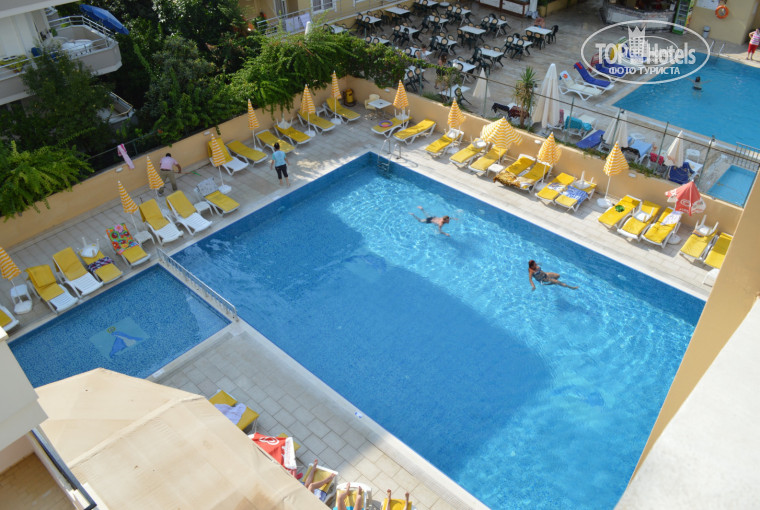 Отдыхали в отели семьёй с ребёнком 2,5 года! Дорога до отеля составила около 3 часов (при этом мы ехали рано-рано утром и наш отель был второй по счёту) но дорога комфортная, и автобус удобный! Минусов в отели очень много, но если Вы не избалованы излишним комфортом и вниманием и у Вас ребёночек постарше, то минусы можно не замечать! Мы старались и у нас получалось, в любом случае море, пляж и настроение сыночка перекрывало все минусы! (перечислю несколько, что-бы быть готовыми: много мух в ресторане (если бы мы были студентами, может и не обратили внимание, но т.к. приехали с сыном... То они мне просто мозолили глаза), перед нашим приездом закончился ром в баре и во время нашего отдыха он так и НЕ появился, и такие "простые" коктейли, которые я предпочитаю, как ром-кола или махито при желании заменяли на водку... Мы жили в главном корпусе, и предпочитали бассейн около него, т.к. там и детская площадка с качелями, но если хотите перекусить... то картофель фри и всё остальное находится в другом баре (у другого корпуса ЧЕРЕЗ ДОРОГУ...) Пандусы для колясок очень крутые и... На пляже мелькают бычки, но опять же, это я ловила взглядом "бдительной мамочки"... а не то что там прям грязно... То что касается номера - мы сразу проверили работу кондиционера и напор воды! Нас всё устроило! А некоторые были не довольны, т.к. кондиционер работал с перебоями и шумел! Лично у нас в комнате убирались отлично для 3* (просто надо понимать, что в 3* не меняют полотенца каждые 2-3 дня, их меняют реже!) по предыдущим отзывам мы это учли и взяли себе достаточное количество своих полотенц! Еда и мне и сыну нравилась (всегда была отварная картошка, или отварные макароны, рис...)(для мужа мало блюд, т.к. ему нельзя острое, а картошку и макароны не очень хотелось есть каждый день...), но если бы это был отель 5*, я бы поставила за еду 3-... А если учесть, что отель 3*, то ставлю 4+!!! Разнообразия мало, но вкусно! (из фруктов только арбуз, дыня и иногда яблоки. Всё!) Из мяса 99% курица! Что огорчило, ни разу не было молочных кашек или обычного омлета на завтрак (а мы же с ребёночком...) и на обед только один вид супа и очень пикантный из-за специй, обычного бульона или супа без специй для деток НЕТ! Ещё хотела отметить, что сотрудники ресторана работают ОТЛИЧНО! Жара, пекло... А они отлично выглядят, опрятные, белые рубашечки, очень шустрые и вежливые! Про море и пляж ставлю оценку 4!!! Пол бала отнимаю за то, что там лежаки и зонтики, бар на пляже платные и пол бала за наличие бычков и пластмассовых стаканчиков...До пляжа идти 3 минуты - и это замечательно! Жалко, что с бассейна сразу нельзя пройти в купальнике, единственный выход через ресепшен и поэтому надо сделать небольшой "крюк", но это не страшно, просто приходилось из-за этого на мокрый купальник одеваться... на ресепшене же в купальнике нельзя... Отдельное спасибо сотрудникам спа-салона, который находится на цокольном этаже! Цены и атмосфера замечательные, Хоть там мало места! Уж насколько мой муж не впечатлительный, но массаж там ему очень понравился... и ногами и руками делали))) Отдельное спасибо массажисту Фати (надеюсь правильно написала!) очень грамотный массаж!!! Рядом с отелем полно магазинов... где нужно торговаться, мы не любители, но всё же цены в 2 раза нам снижали... Погулять после ужина и купания есть где))) Наша оценка: 4!!! За такую цену и такой пляж стоит ехать! По возм