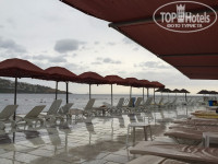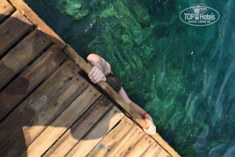 В море два способа входа, либо с понтона сразу на глубину, либо с берега, но там советую тапочки, уж очень галька колючая, а так все нормально. Очень много рыб, им работники ресторана носят хлеб (мешками). Поскольку мы приехали под самое закрытие сезона, то выбор лежаков у нас всегда был огромный. Пляжные полотенца выдаются по карточкам, но они короткие, так что если кому не очень нравится лежать на голом матрасе, то захватите свои покрывальца или можете купить в магазинчике около главного бассейна за 3 доллара хлопковое тонкое покрывальце в красную или синюю клетку, в этом же магазинчике можете также купить и магнитики и сувенирчики, может я и не права, но по-моему цены такие же как и в Гюндогане.