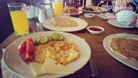 Питание. В отеле 5 ресторанов и 6 баров. Есть ранний завтрак, завтрак, обед, ужин и поздний ужин. Вообщем еды море! Тот кто пишет, что не чего есть и нет разнообразия....ну не знаю, я сама привереда еще та к еде!!! Может завтрак не отличается разнообразием(яичница, омлет, блинчики, овощи, фрукты, сосиски, картошка, колбаса, сыр и т.д.), но обед и ужин отличаются и можно найти по своему вкусу (рыба разная, супы разные, мясо курицы, утка, говядина, телятина, мясные рулеты, фаршированный перец, котлеты, фрикадельки, гуляш, овощное рагу, картофель фри, макароны с разной пастой, пицца, есть уголок для здорового питания и еще много чего...). Овощи и фрукты были всегда! Правда фрукты были нарезаны крупными кубиками (апельсин, банан, дыня, яблоко,виноград) и выложены в большую миску, откуда уже накладываешь себе в тарелку, можно добавить сладкие соусы или есть свежими. Но так же были и просто наложены фрукты такие как банан, яблоки,апельсины,финики. Были всегда разные пирожные, соки, чай, кофе, коктейли. Приготовлено все вкусно и сочно!