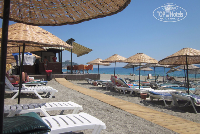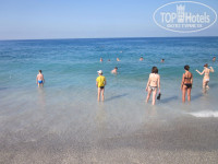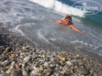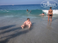 Пляж и море... Очень близко, переход под шоссе по подземному переходу, выходишь - сразу пляж и море! Очень удобно! Шезлонги свободные были всегда, но лежать мы не любители, просто бросали вещи и шли купаться! На средиземном море мы были впервые, поэтому эмоции зашкаливали! Теплое, ласковое, но сильное, а иногда и угрожающее!!! Это все о нем! Да, сразу при входе начинаются валуны, ходить практически невозможно, лучше сразу отплывать вглубь... Но мы приноровились... А вот у самого берега для нас был самый кайф! В прибрежной волне как мы только не барахтались! Волны были весь период пребывания в отеле, когда меньше, когда больше, но всегда волна.... Некоторые были тоже в восторге, как и мы, некоторые плевались, но это все на любителя... Сам пляж - мелкая галька, но ходить по ней совсем не больно! В общем от пляжа и моря мы остались в полном восторге, нигде столько времени не проводили в соленой воде, как тут!