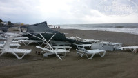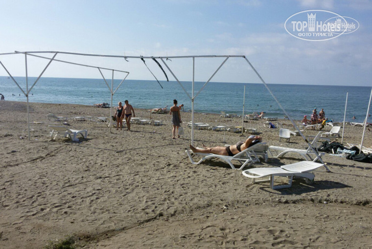 Пляж сразу через подземный переход. Шезлонги , и матрасы - бесплатно. Матрасы растрепанные. После сильного дождя и ветра снесло навес от солнца на пляже. Никто так его и не отремонтировал, наверно уже и не будут (конец сезона). Бара па пляже нет, по началу стоят кулер с водой, потом и он пропал. Вход в воду справа нормальный, слева камни. Если отплыть подальше от берега, то там вода чище и можно стоять (мелко) . На пляже куча мусора, никто не убирается. На шезлонгах от отеля иногда лежат местные жители.