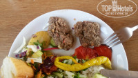 В основном были только одни овощи. Куры в чистом виде не давали ни разу. Давали пару раз наггетсы, один раз скумбрию и пару раз после праздника Курбан Байрам давали котлетки из баранего фарша (или я ошибаюсь что это была баранина). Пару раз давали картофель, а так в основном рис и спагетти (которые тоже давали по выдаче). Удивило, что даже соевое мясо давали по 2 штуки в руки. Один раз еле выпросила вторую котлетку, хотя всем клала по 2, а мне 1 дала :D . На раздаче стояла женщина в грязной одежде, у которой даже фартука не было и мужчина, а так же какие-то дети. Салаты не брала, т.к. попадалось пару раз кислое. На завтрак ели яйца и сыр. Сливочное масло было испорченное, с жёлтым налетом. Из фруктов не было НИЧЕГО, кроме арбуза, и не всегда хватало. Сладостей ВООБЩЕ не было.Пару раз чёрствую засохшую булку клали. На чистых вилках была грязь. Столы были в крошках, но посуду убирали. От питания в этом отеле у меня был шок! Ходили в магазин, и там покупали себе покушать что-нибудь.
