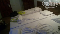 Приехали ночью, нам сразу выдали ключи, проводили до номера. В номере было 3 кровати, нас двое. Места из-за третьей кровати было маловато, но пройти можно. Так же был холодильник и кондей, который сильно шумит. Все работало. Душ работал, с горячей водой проблем не было. Муравьев и других насекомых не было. Очень плохая звукоизоляция. Слышно всё, что на этаже. Дверьми хлопают с такой громкостью, что ночью спать не возможно.