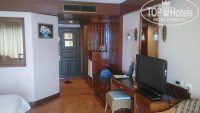 Отдыхаем в этом чудесном отеле с 1 по 13 октября 2015 года. Буду писать всё и подробно и дополнять в процессе. Время вылета у нас было неудачным: думали, что заселимся и сразу на пляж, но вылетали в 6.35, прилетели в три часа дня по местному времени, ещё немного задержались в аэропорту Пхукета, п.ч. ждали троих человек, которых, похоже, не выпустили из России, пока доехали до отеля, пока заселились, и уже шесть часов вечера, стемнело, дошли до пляжа, а там хоть глаз коли. В итоге, первый день считай прошел. Заселили моментально. Встретили чашкой какого-то, прекрасного на вкус, фруктового напитка. Дали номер на первом этаже ближнего корпуса (окна на ресторан). По дороге в номер встретили таракана, потом вошли в номер и сразу вышли, пошли менять: запах сырости или плесени в номере - раз, и второе, побоялись, что насекомец будет забегать к нам в гости по ночам. В итоге получили ключи от номера на 4 этаже дальнего корпуса с видом на бассейн. Высоковато. Пообещали через три дня переселить на второй этаж этого же корпуса, но в итоге обманули, ну а мы уже не очень-то и хотели. Номер прекрасный! Большой, мебель в классическом стиле - темное дерево, огромная кровать, плюс детская кровать, телевизор 32 дюйма, один русский канал (отличная подборка кинофильмов), ванная, которой мы не пользуемся, душевой угол со шторкой, раковина, в которой, кстати, есть пробка и очень удобно делать мелкие постирушки, на балконе столик, два стула и сушилка. В номере никакой живности, ни на полу, ни в воздухе! Но один раз спасли наших соседей от таракана, который уже заползал на порожек их номера, стремясь к щели под дверью. Пришлось придавить незванного гостя. В маленьком холодильнике бутыли с водой по 60 батт, которые мы сразу отставили в угол шкафа, и тарелочка с фруктами - комплимент от отеля. Две бутылки воды бесплатно раз в день. Фен, чайник. Кофе, сливки, чай и сахар бесплатно по два пакетика в день. Так же мыло, ватные палочки и шапочка для душа тоже обновляется каждый день. В трех дозаторах шампунь с кондиционером, гель для душа и лосьон для тела. Если хотите, чтобы их пополняли, открывайте дозаторы и кладите крышки с трубкой рядом, иначе никто туда ничего доливать не будет! Полотенца меняют каждый день, если хотите замену постельного белья, то хотя бы простынь снимайте и бросайте на пол вместе с полотенцами, и хоть каждый день. Убираются нормально, но один раз забыли про пепельницу на балконе, видимо, и сам балкон не убирали. Вместо чаевых оставляем маленькие шоколадки. Очень не хватает халатиков! После душа не в чем выйти на балкон покурить или развешать бельё. Но халаты только для номеров первого этажа у которых выход в бассейн((( Завтраки отличные! За четыре дня пока не повторялись горячие блюда! А так всегда есть бекон, ветчина, сыр, йогурт, хлопья, сушеные фрукты, мёд, разные соусы, оливки, огурчики, два вида сока, фреш - кусочки фруктов в собственном соку, гренки, тосты, салаты из овощей, арбуз, ананас, папайя и что-то типа нашей дыни, отдельный повар приготовит вам яйца как пожелаете. Из горячего был чудесный тайский рис с яйцом, картофельное пюре под сыром, тайская вкусная лапша в соевом соусе, овощное рагу с цветной капустой, спаржей и маленькими кукурузинками, картошку и в мундире запекали и типа драники во фритюре были, всё вкусно, всего много, интересно, чем ещё удивят. Персонал очень доброже