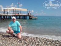 - пляж у отеля с пирсом и лежаками (не мало важно - на нём есть бар) и шезлонгами на берегу. Места хватало всем. Пляж галечный и первое время не комфортно было заходить в воду, но потом привыкаешь.