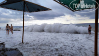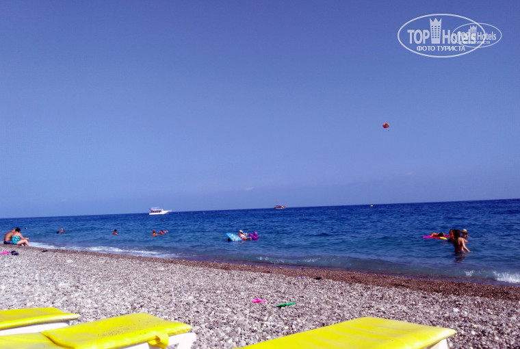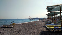 Пляж: Море - прекрасное, чистое, теплое, очень соленое. Пляж галечный, но тапочки лучше приобрести, особенно когда волны на море. Тем кто любит рыбачить - можете взять с собой спиннинг, на пляже есть мостик, так с него утром на курицу можно даже что-то приличное поймать. Есть напитки на пляже, но лучше покупайте воду или пиво в магазине и пейте их. Воду покупали 5л Nestle за 2$, нам хватило на пол-отпуска)) Pilsner там очень даже какое пиво, 2$ за бутылку. Кстати по 1$ сможете купить себе приличные пляжные полотенца в тех же магазинчиках.